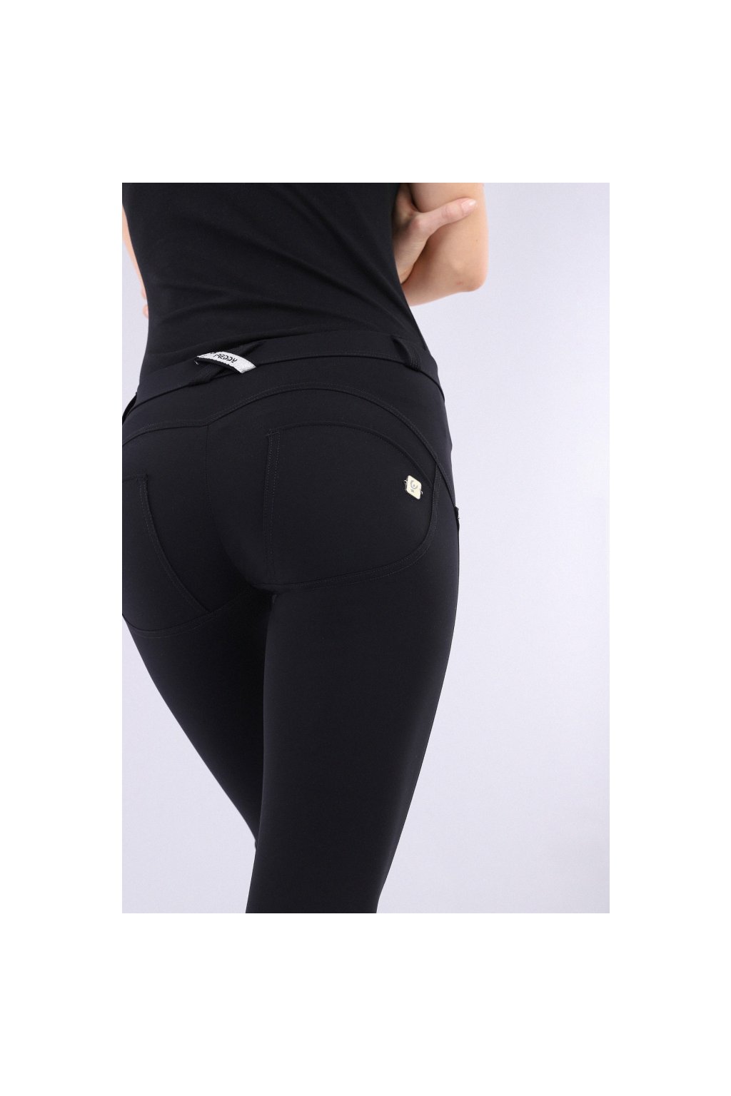 Pantaloni negri push-up din colecția WR.UP® din material Diwo pro Emana, 2 nasturi, talie obișnuită, lungime 7/8 până la gleznă. Pantalonii au fost gandiți pentru a sublinia liniile avantajoase feminine.Cusătura specială desfăsoară efect de modelare pe cele mai delicate puncte ale corpului si asigura un efect de push-up, care face fundul mai plin si mai rotund. Compoziție:59% poliamida, 41% elastan