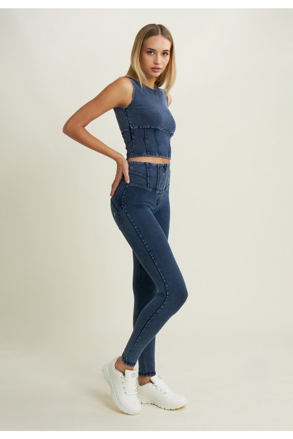 Blugi modelatori superskinny WR.UP® cu talie înaltă și cusături decorative