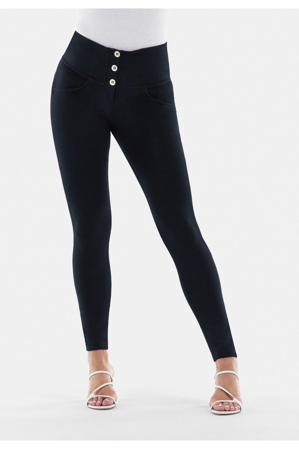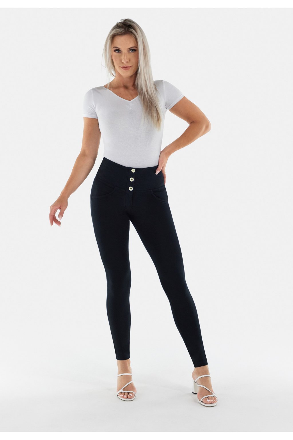 Pantaloni push-up cu talie înaltă din gama WR.UP® lungime regulată,cu închidere cu trei nasturi,din bumbac organic și elastan reciclat. Croiala skinny se combină cu materialul elastic, urmând forma corpului fără a-l strânge, oferă libertate totală de mișcare. Un articol de îmbrăcăminte dedicat accentuării feminității tale datorită designului și efectului de modelare al tehnologiei inovatoare WR.UP® patentată de Freddy, care modelează silueta și oferă un efect de push-up datorită inserțiilor de silicon și cusăturile unice. Cu Freddy, feminitatea și stilul se îmbină perfect pentru a-ți pune în valoare formele.